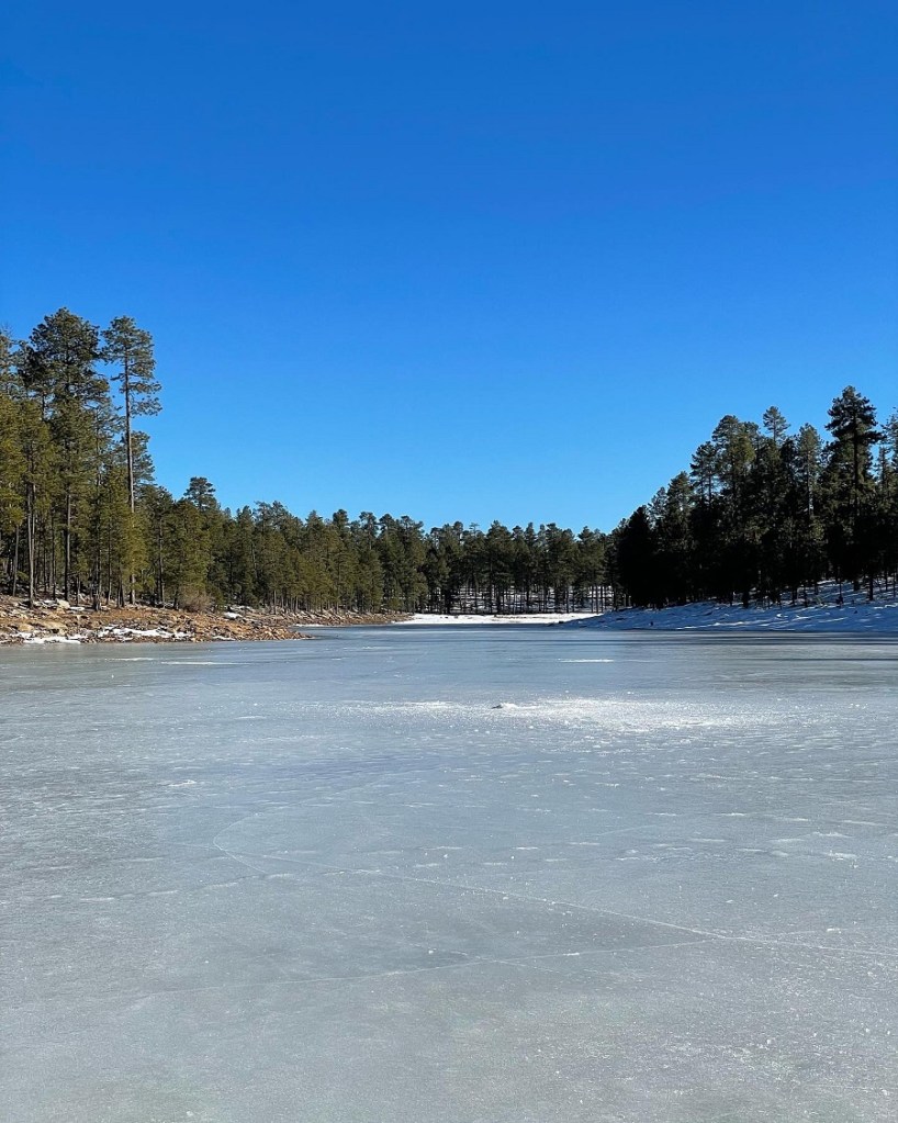 Many people don’t know that Arizona is more than just cactus and desert. When you head up north from Phoenix, you hit miles and miles of Ponderosa Pines and small creeks and man made lakes. During the Winter months, it is cold enough for enough ice to form and thick enough to walk on. I have dreamed of heading up north and visiting one of these lakes to drop a line. This last weekend, this dream of the last few years finally came true.